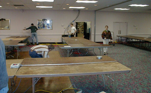 Everyone had their part in setup. Here we see multiple people setting up the power cables.